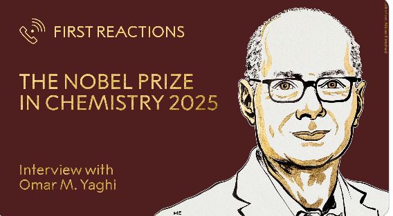 العالم السعودي عمر ياغي يفوز بجائزة نوبل في الكيمياء 2025, اليوم الأربعاء 8 أكتوبر 2025 04:23 مساءً