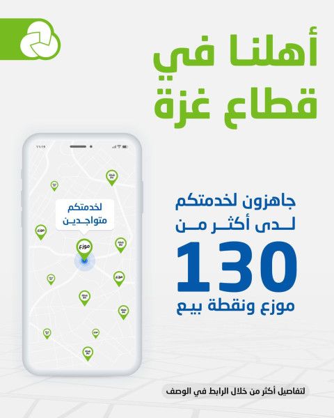 أعلنت شركة جوال، عن توافر أكثر من 130 موزعاً ونقطة بيع تعمل حالياً لخدمة المواطنين في مختلف مناطق قطاع غزة.