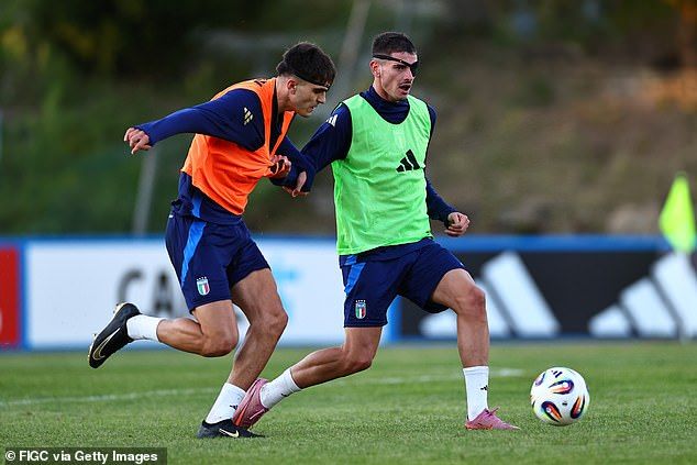 وشوهد لاعبا المنتخب الشاب دافيد بارتيساغي ولوكا ليباني وهما يتنافسان على الكرة بعين واحدة مثل القرصان الشهير في قصص بيتربان الخيالية وحتى الحارس توماسو مارتينيلي وضع غطاء أسود على عينه اليمنى.