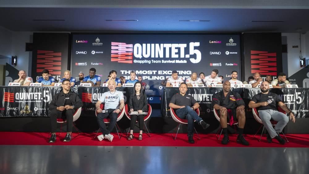أعلن نجوم العالم جاهزيتهم لتخوض التحدي الأول من نوعه في المنطقة، وذلك في المؤتمر الصحفي الذي عقد الأربعاء ضمن فعاليات أسبوع النزال الخاص ببطولة «كوينتيت 5»، إحدى أكثر بطولات الفنون القتالية ابتكاراً، والتي تُقام يوم الخميس في «كوكاكولا أرينا»، بمشاركة نخبة من أبرز أبطال العالم في الجوجيتسو الجرابلينج.