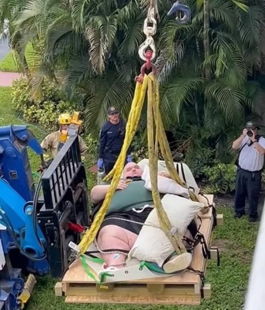 وقالت السلطات المحلية إن عملية النقل حدثت في مدينة ويست بالم بيتش؛ إذ استدعيت فرقة الطوارئ إلى منزل الرجل، الذي لم يكشف عن هويته، بعد تعرضه لمضاعفات صحية حالت دون تمكنه من النزول على الدرج أو الخروج عبر الأبواب بسبب وزنه الزائد.