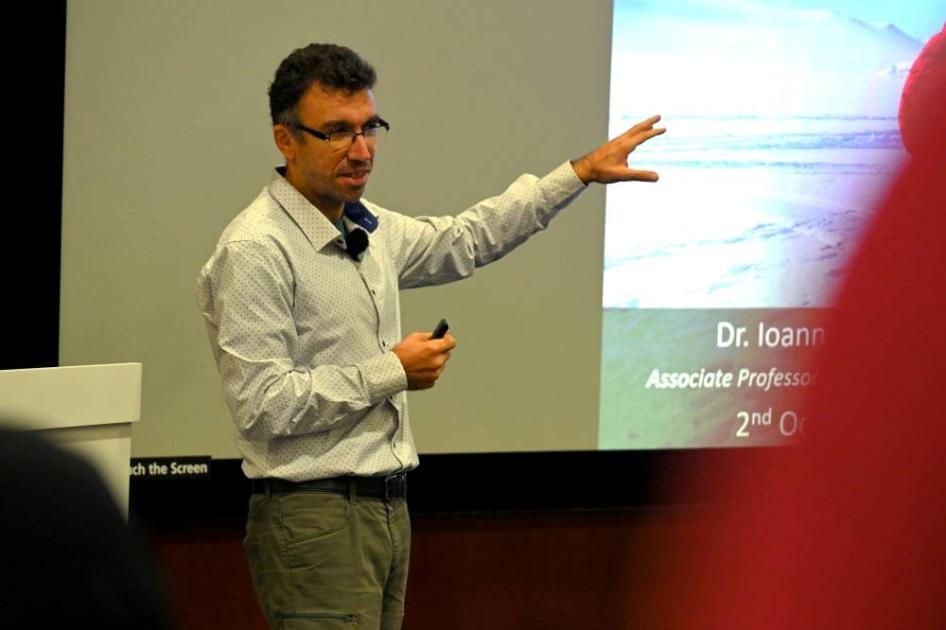 كما قدم الدكتور يوانيس بازيوتيس، الأستاذ المشارك في جامعة أثينا الزراعية باليونان، عرضا بعنوان: «البحث عن مكوّنات نظامنا الشمسي في القارة القطبية الجنوبية مع بعثة»ANSMET'، استعرض فيه تجربته العلمية مع البعثة الأمريكية التابعة لوكالة ناسا، والتي تعمل على جمع النيازك من القارة القطبية الجنوبية منذ أكثر من أربعة عقود. وأوضح أن الظروف الجليدية والبرودة الشديدة في القارة تساعد على حفظ النيازك في حالتها الأصلية المثالية للدراسة العلمية، مشيرا إلى أنواع وتصنيفات النيازك المكتشفة خلال هذه البعثات.