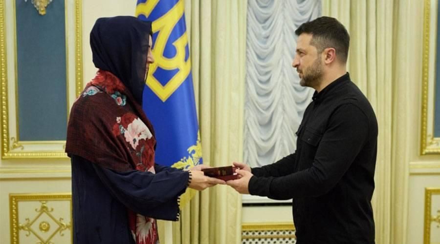 ومنح زيلينسكي ريم الهاشمي وسام الأميرة أولغا من الدرجة الأولى، أحد أرفع الأوسمة المدنية في أوكرانيا، تقديراً لإسهامات دولة الإمارات في دعم الشعب الأوكراني وتعاونها الإنساني البناء.