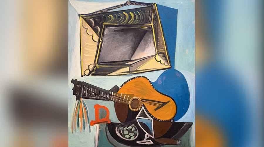 اللوحة الزيتية بعنوان «طبيعة صامتة مع جيتار»، رسمها بيكاسو عام 1919، وتُقدر قيمتها بـ 600 ألف يورو. وهي مملوكة لجامع فني خاص في مدريد، وأُعيرت للمعرض الذي افتُتح الأسبوع الماضي، لكن اللوحة لم تصل إلى وجهتها مطلقاً.