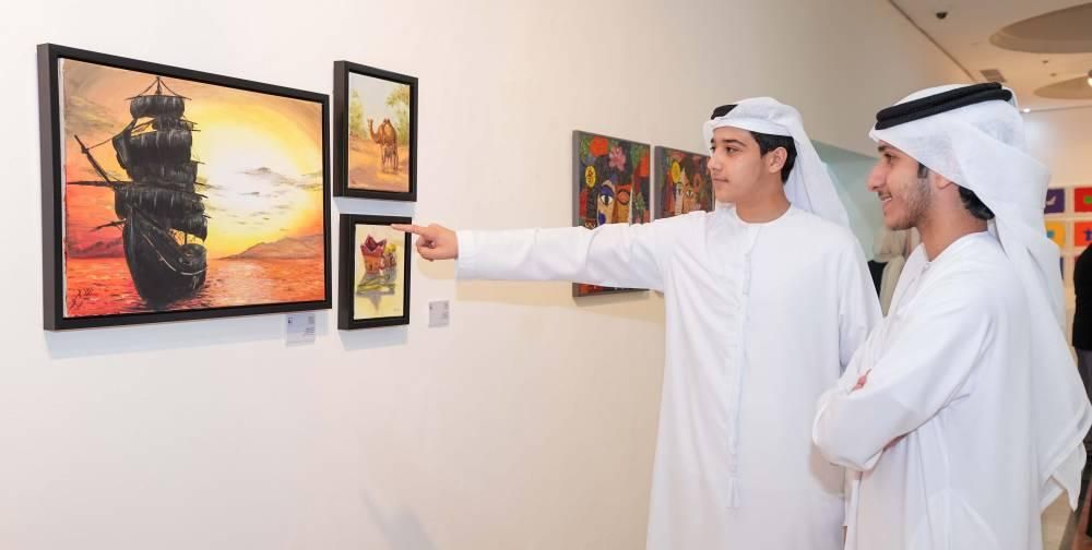 وإلى جانب الفعاليات الأدبية، احتفى الموسم أيضاً بالفنون التشكيلية من خلال معرض «عوالم الفنون بين الحرفة والخيال» الذي قدّم ثلاث رؤى رئيسية جسدت حواراً بين الأجيال، وهي: «من الخام إلى الخيال» التي تُبرز قدرة المنتسبين على تحويل الخامات إلى لغة للتعبير الفني، و«الذاكرة والهوية» التي استلهمت رموز التراث الإماراتي وعناصره من البيوت القديمة إلى البحر والشخصيات الوطنية، و«عوالم تتخطى الواقع» وعبّرت عن تلاقي الفن بالتكنولوجيا في تجارب بصرية نابضة بالإبداع والمعنى. وضم معرض الصور أعمالاً رقمية من برنامجي «عدسة العالم الموازي» و«خيال الذكاء الاصطناعي AI»؛ إذ حوّل المشاركون القصص إلى لوحات وأغلفة كتب رقمية تنطق بخيالهم وقدرتهم على توظيف التقنية في الفن.