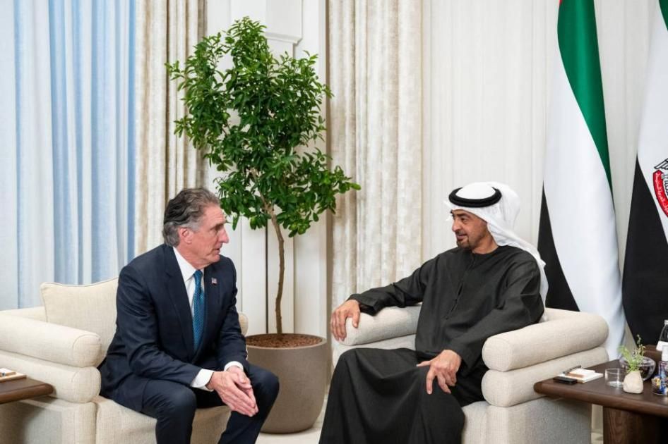 حضر اللقاء.. سمو الشيخ ذياب بن محمد بن زايد آل نهيان نائب رئيس ديوان الرئاسة للشؤون التنموية وأسر الشهداء والشيخ محمد بن حمد بن طحنون آل نهيان مستشار صاحب السمو رئيس الدولة والدكتور أحمد مبارك المزروعي رئيس مكتب رئيس الدولة للشؤون الاستراتيجية رئيس مكتب أبوظبي التنفيذي ويوسف العتيبة سفير الدولة لدى الولايات المتحدة وعدد من كبار المسؤولين بجانب الوفد المرافق للضيف.